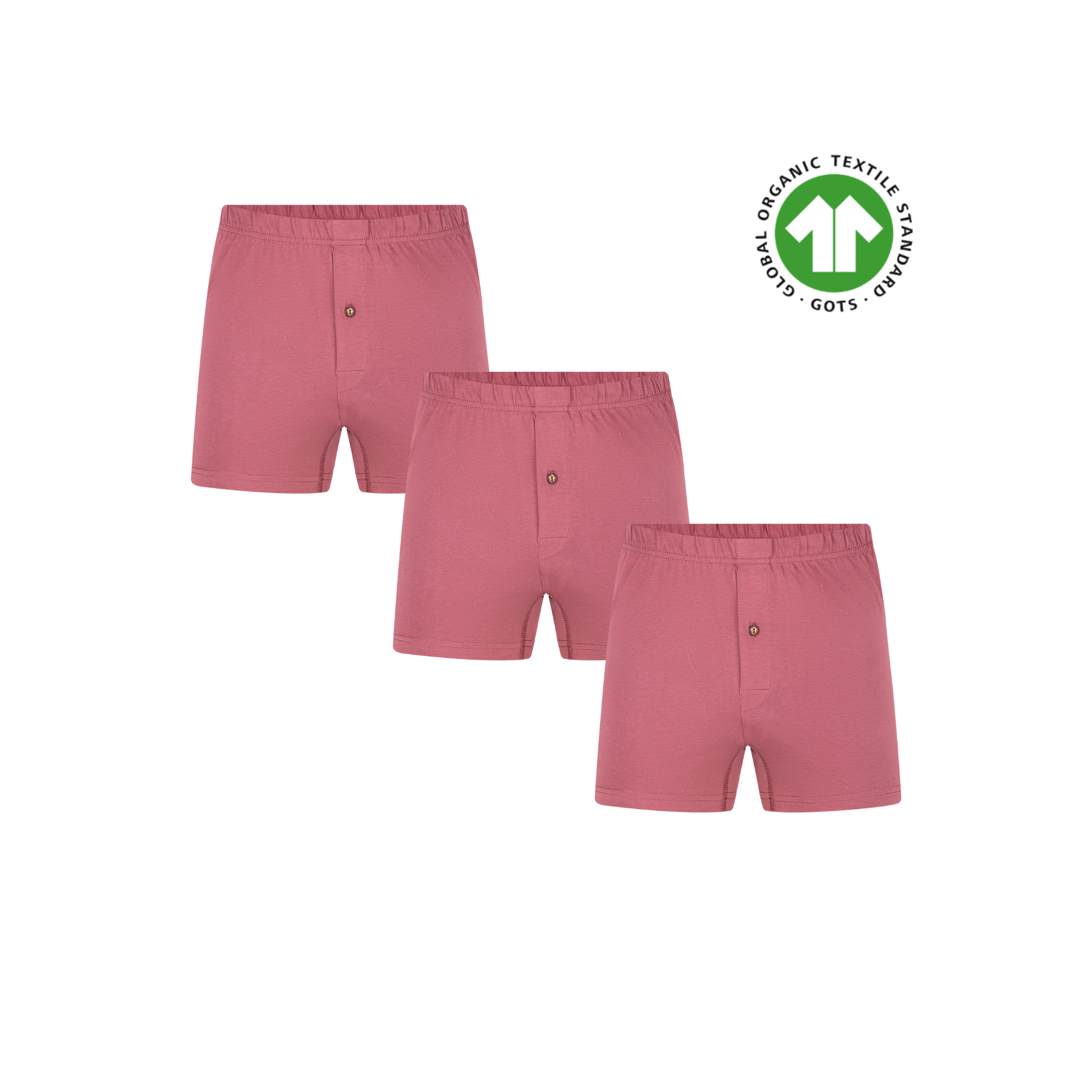 GOTS Sertifikalı Organik Pamuk Erkek Boxer Şort İç Çamaşırı 3'lü Paket - Kırmızı Kırmızı