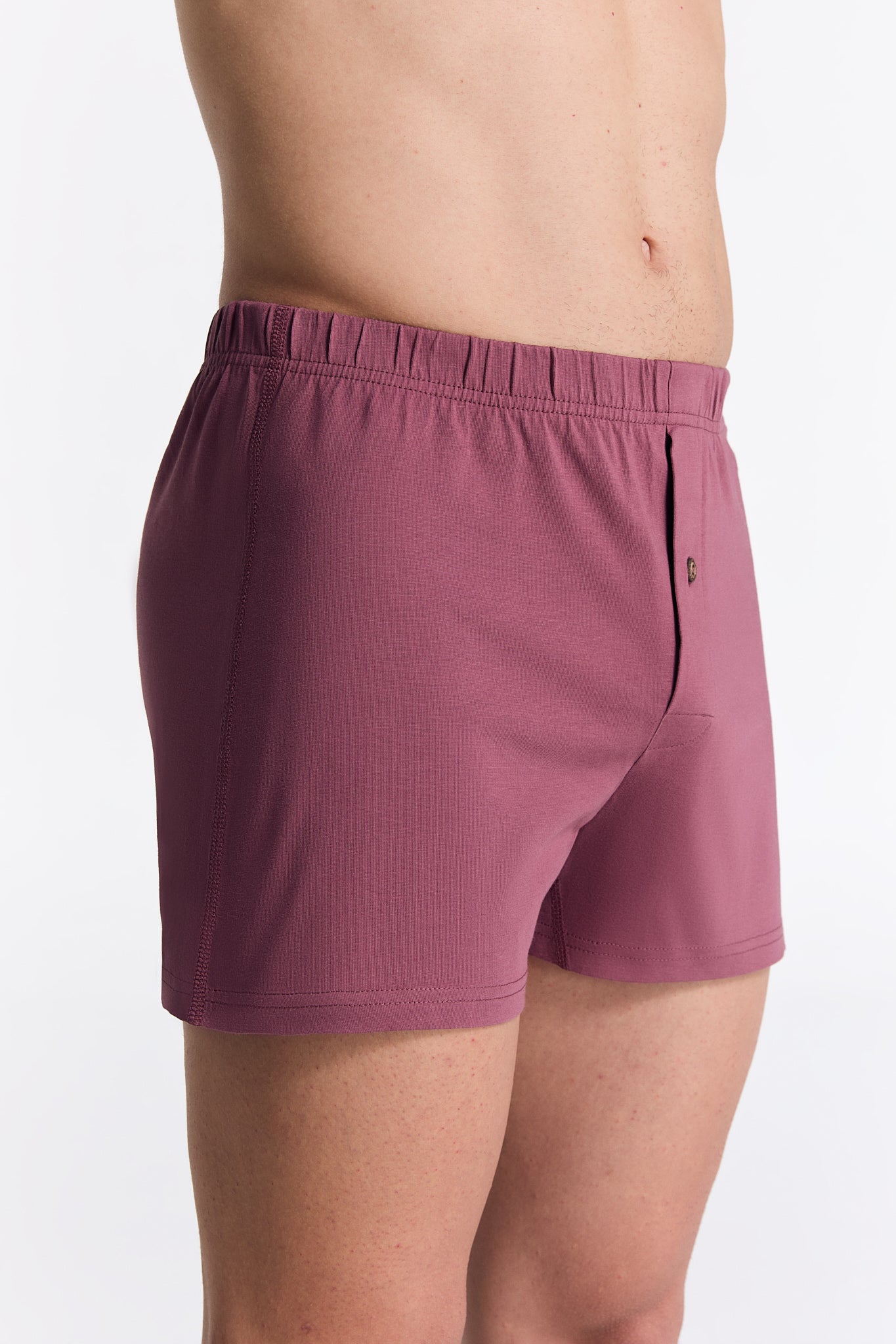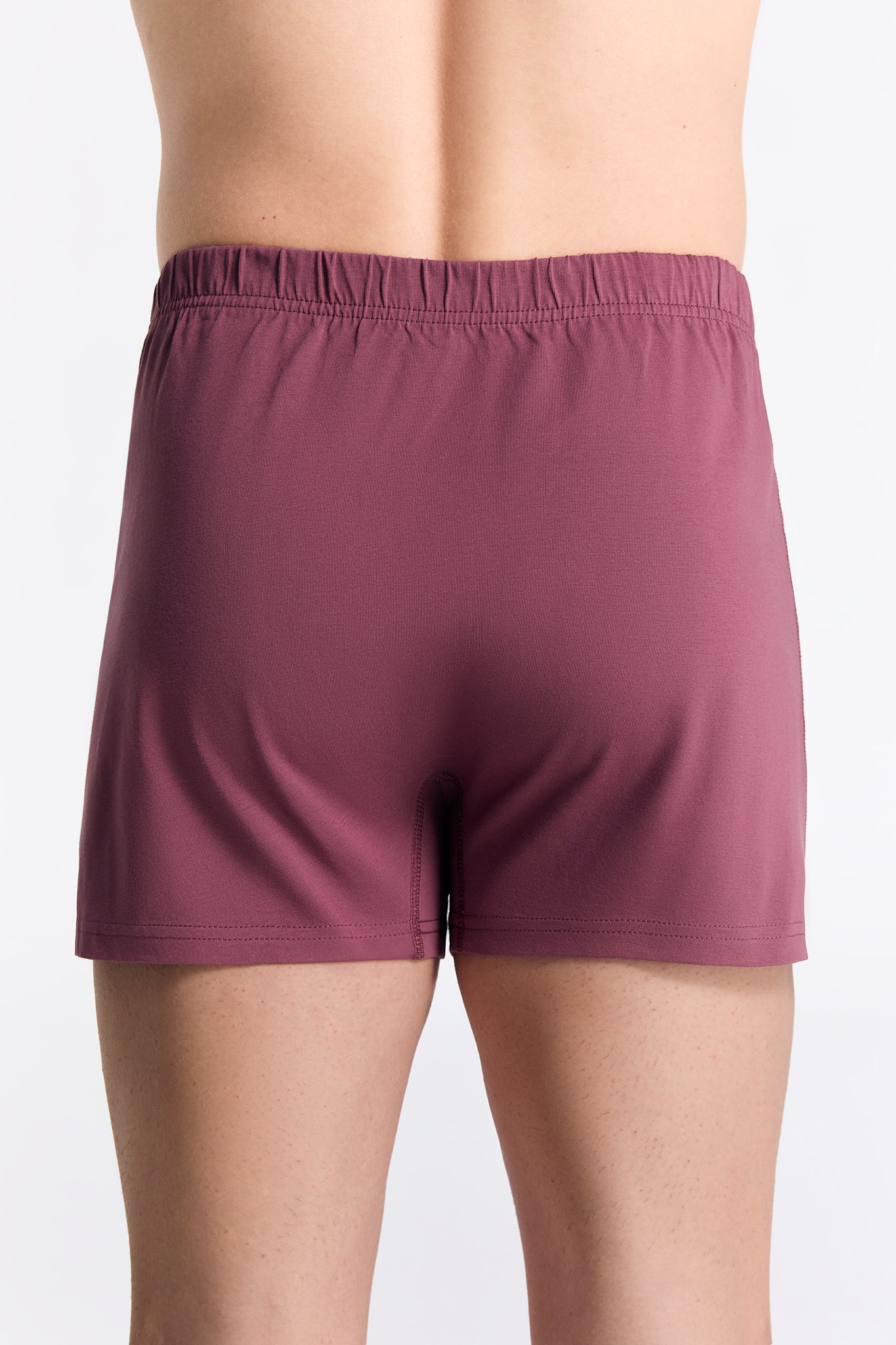 GOTS Sertifikalı Organik Pamuk Erkek Boxer Şort İç Çamaşırı 3'lü Paket - Mürdüm