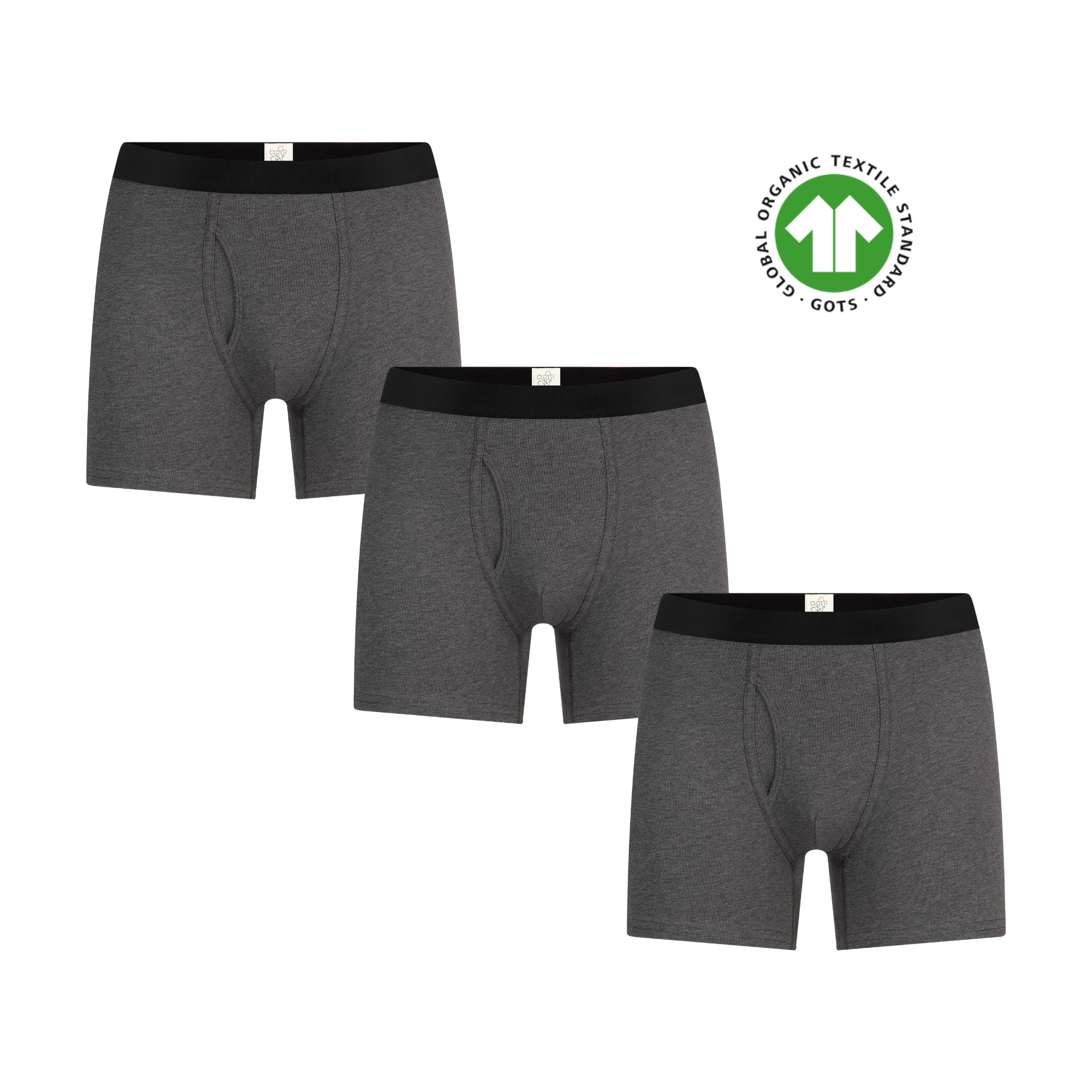 GOTS Sertifikalı Organik Pamuk Erkek Boxer Şort İç Çamaşırı 3'lü Paket - Antrasit Melanj