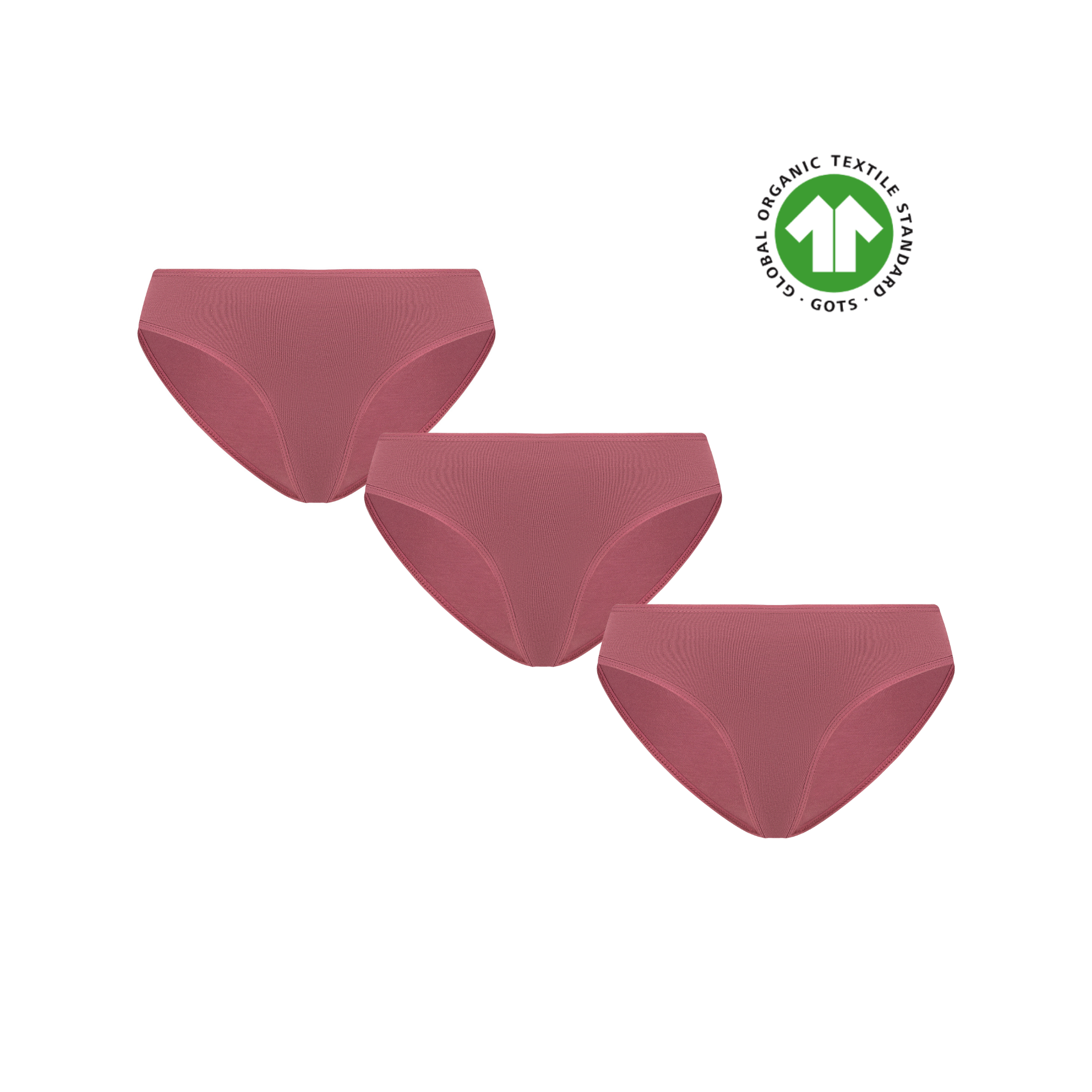 GOTS Sertifikalı Organik Pamuk Klasik Kadın Külot 3'Lü Paket - Verblühte Rose Gül Kurusu