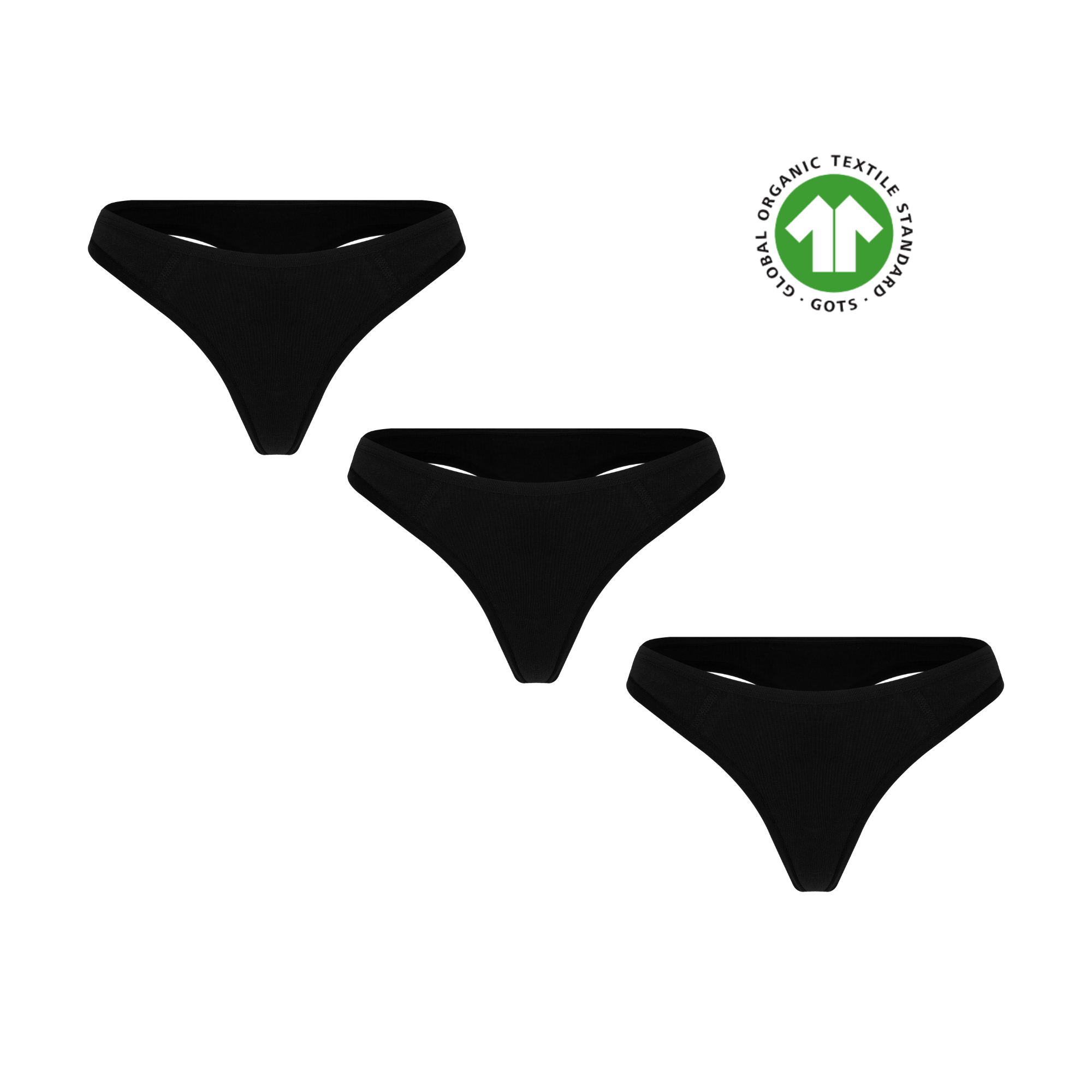 GOTS Sertifikalı Organik Pamuk Tanga Slip 3'Lü Paket - Siyah