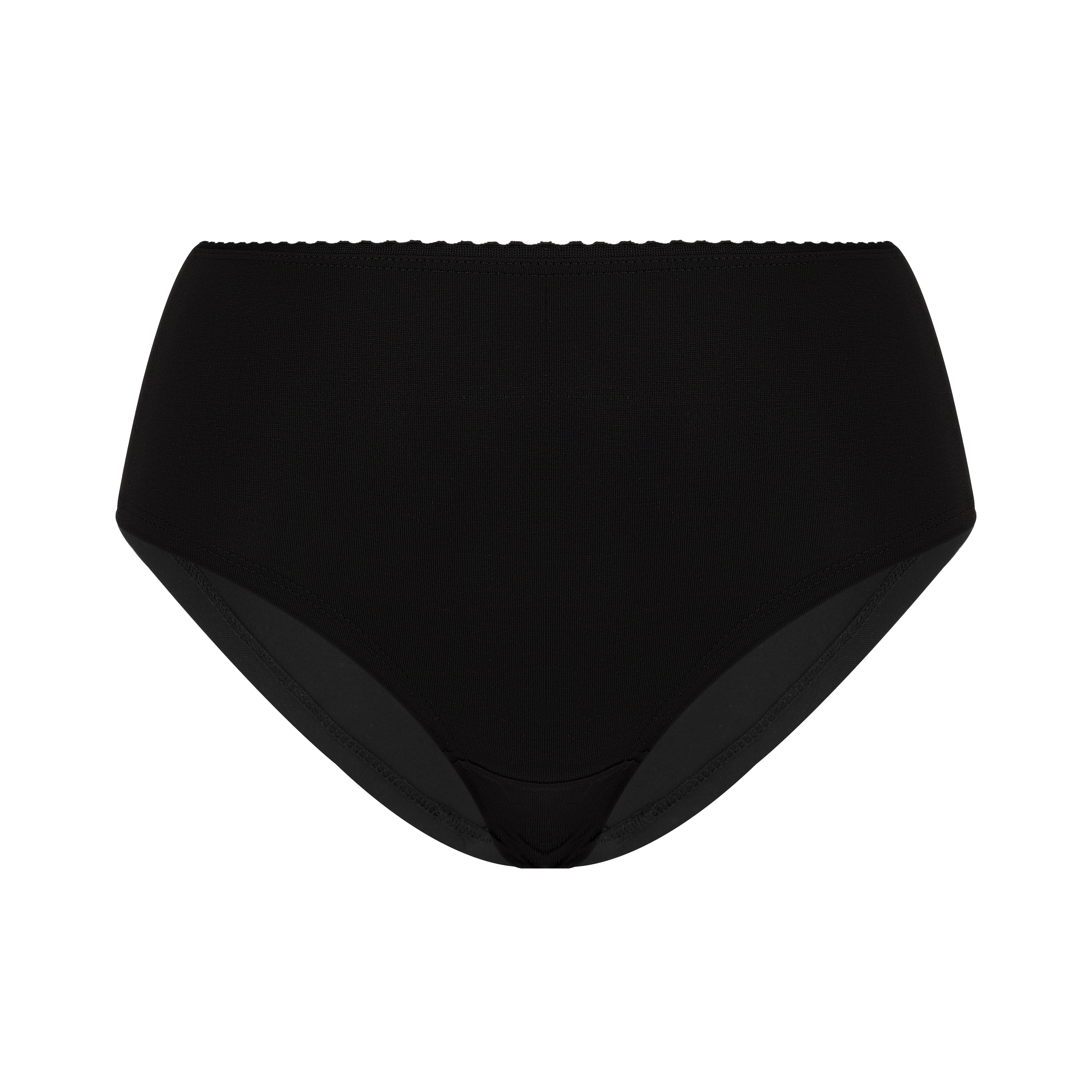 Siyah renkteki bu kadın panty, bel kısmında zarif ince dantel detayı ile şık bir dokunuş sunar. Bacak kesimlerinde lastik bulunmadığı için cilde iz yapmaz ve rahat bir kullanım sağlar. Yumuşak pamuk jarse kumaşı cilde nazikçe temas eder, nefes alır ve gün boyu konfor sağlar