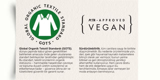 GOTS (Global Organic Textile Standard) sertifikasiyla pamuk tarlasından üretim bandına kadar tüm aşamalar çevreye duyarlı, sürdürülebilir ve adil ticaret ilkelerine uygun şekilde yürütülmüştür.