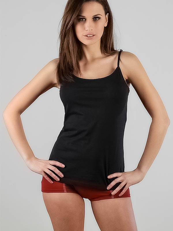 Siyah renkteki bu kadın spagetti askılı top, hem iç giyim atleti hem de günlük kombinlerde tek başına kullanılabilir. Yumuşak pamuk jarse kumaşı cilde nazikçe temas eder, nefes alır ve gün boyu konfor sağlar.