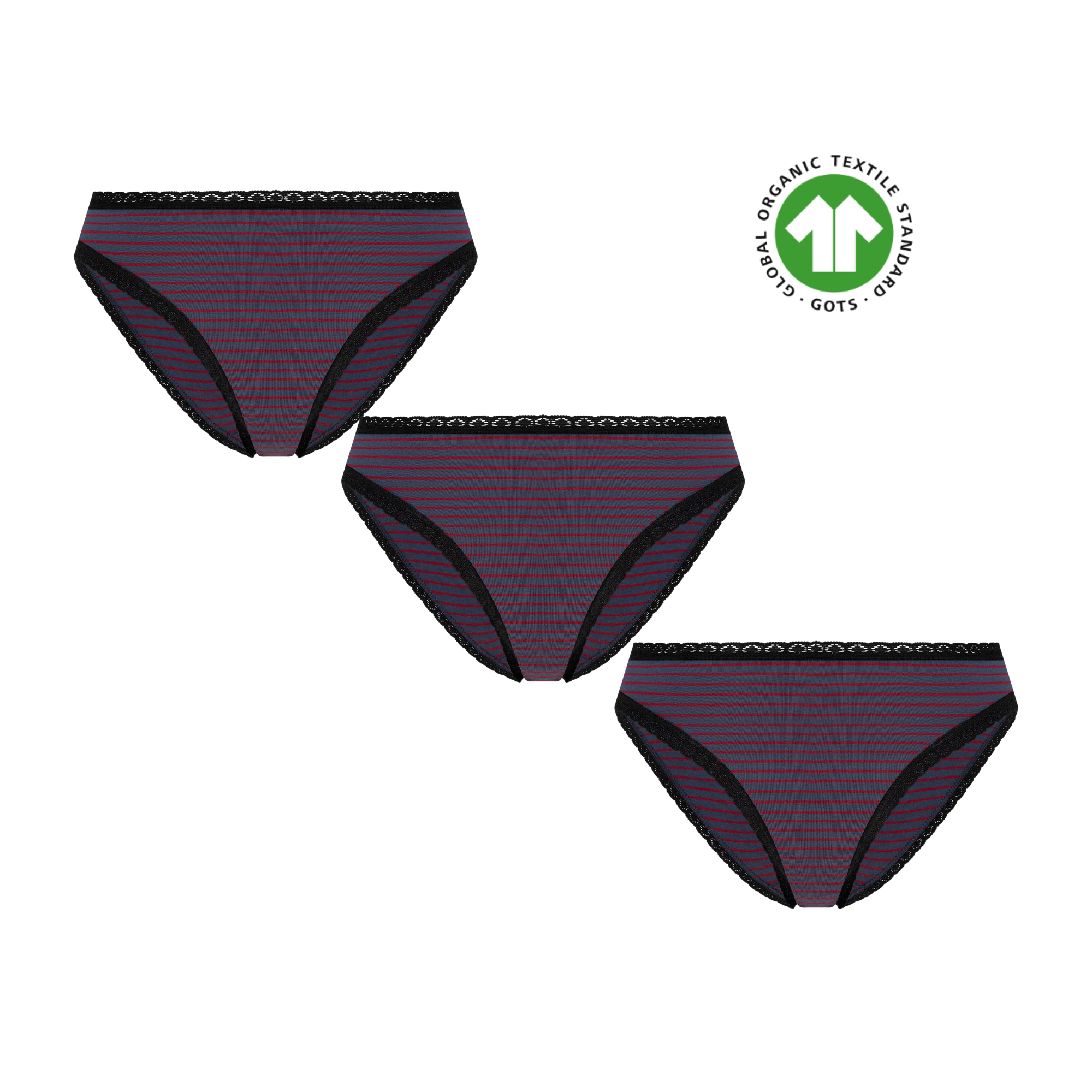 GOTS Sertifikali Dantelli Organik Pamuk Kadın Külot 3'Lü Paket - Civit Kırmızısı Civit Kırmızısı